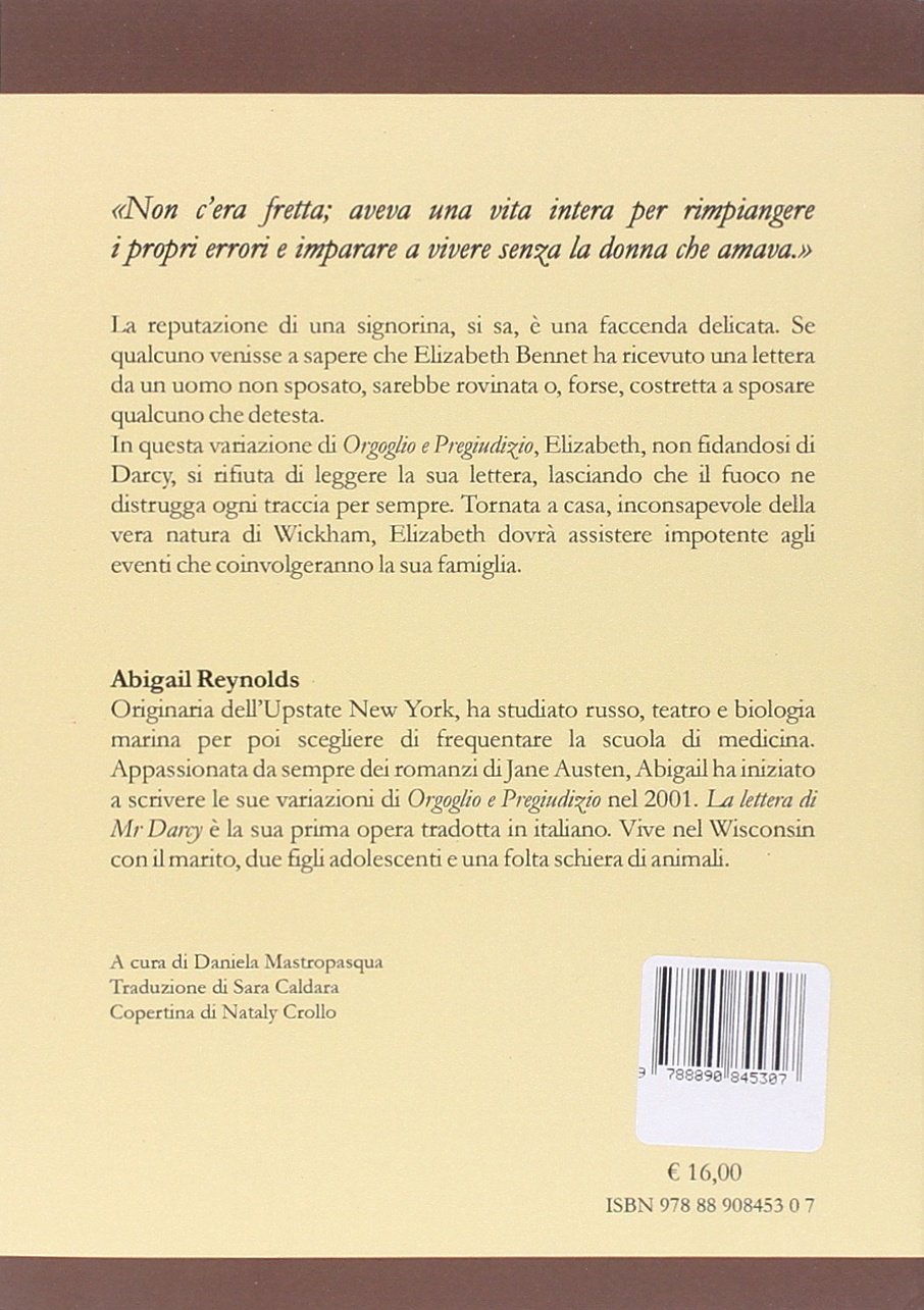 "La lettera di Mr Darcy" di Abigail Reynolds - La Biblioteca di Eliza Se qualcuno venisse a sapere che Elizabeth Bennet ha ricevuto una lettera da un uomo non sposato, sarebbe rovinata o, forse, costretta a sposare qualcuno che detesta. In questa variazione di Orgoglio e pregiudizio, Elizabeth, non fidandosi di Darcy, si rifiuta di leggere la sua lettera, lasciando che il fuoco ne distrugga ogni traccia per sempre.